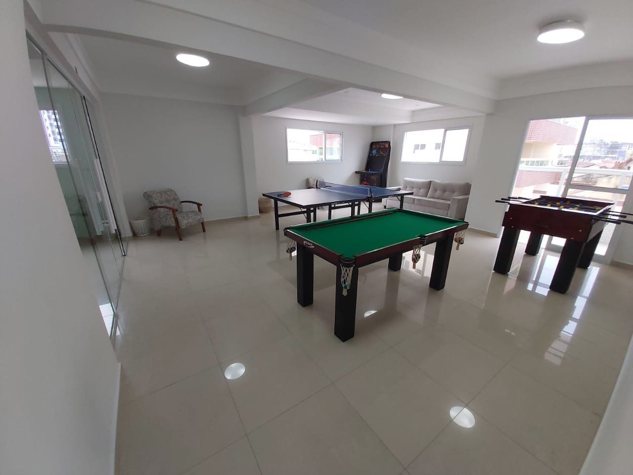 salão de festas com churrasqueira, espaço fitness e brinquedoteca.